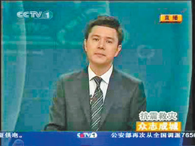 “為什么我們總是被這樣的聲音,這樣的畫面感動,為什么我們總是看著看著就會眼含熱淚,”5月14日中午,趙普在主持央視“眾志成城 抗震救災”地震直播節目,當看到前方記者發回的報道畫面后,趙普禁不住哽咽了。觀眾可以明顯地看到,趙普的眼眶濕潤了,為此他不得不低頭調整一下情緒。