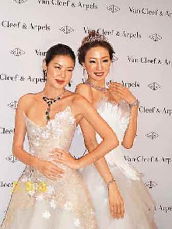 中新網(wǎng)5月23日電 據(jù)香港文匯報(bào)道,樂(lè)基兒和陳嘉容前晚齊齊穿起婚紗為一個(gè)珠寶品牌行走秀,樂(lè)基兒還戴上價(jià)值逾三千萬(wàn)元的綠寶鉆飾,艷壓全場(chǎng)。