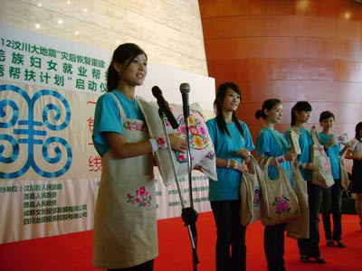 在稍后的一周時間內,5位中華小姐將前往羌民族世代聚居、同時也是受地震破壞嚴重的汶川、理縣、茂縣等地,與羌族婦女一起住帳篷、做刺繡,了解羌繡手工技藝、感受和記錄災區同胞在災后重建階段的生活狀況。5位華姐義工將在“壹基金”位于四川當地的羌繡幫扶中心的培訓指導下,了解羌繡的生產流程、參與產品的設計包裝,在進行全面深入調研的基礎上集體完成羌繡幫扶報告并制定羌秀推廣計劃。5名華姐義工,有學習傳媒專業的,也有學習服裝設計專業的,我們會設計出有針對性和可行性的羌繡推廣方案,通過報紙、電視、網絡讓更多的人了解羌繡,同時也給羌繡手工藝品開拓一片市場,幫助受災群眾盡快實現生產自救。”