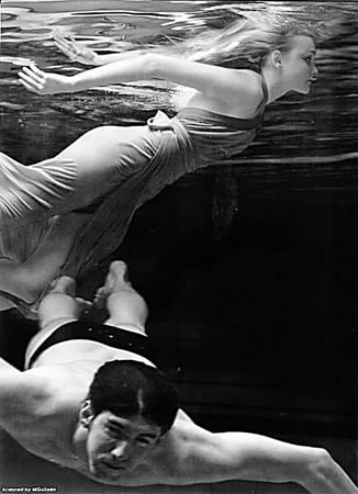 美國游泳天才菲爾普斯與名?_琳·特提妮共同為某雜志拍攝了一組水中寫真。兩人在水里演繹浪漫情調。