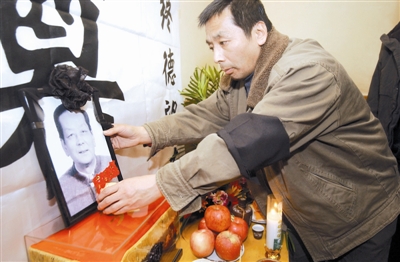 范振鈺的兒子在布置靈堂。