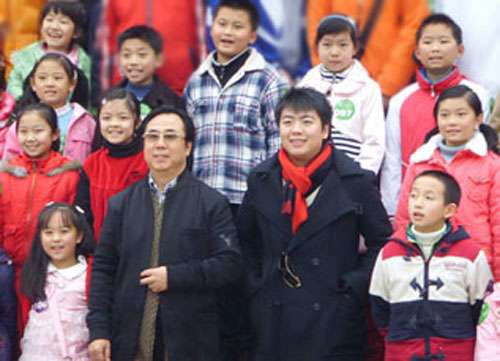 郎朗與朗爸和琴童合影