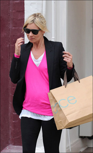 OL的穿衣神話凱特·莫斯一向偏愛黑白灰三色調衣服,今次心情大好,為了襯托出好心情換上枚紅色衛衣,配上黑色的西裝外套,醒目十足,黑色緊身襪子配黑靴子,高挑性感,看來粉色在今春將會掀起風潮。