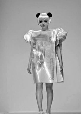 法國當地時間3月20日晚9點,一場以“熊貓”為主題的服裝秀在巴黎東京宮上演。在這場時裝秀上,現今中國社會的各色人物都被搬上舞臺走秀。一位身穿印有百元人民幣的模特被稱為“股民”,另一位頭戴花帽、衣著性感的模特則被定義為“二奶”。