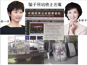 據《經濟半小時》報道,央視記者在采訪中發現,一個叫做“中國慈善公益聯盟組織”的網站公開打出了央視著名主持人敬一丹和李修平的形象。