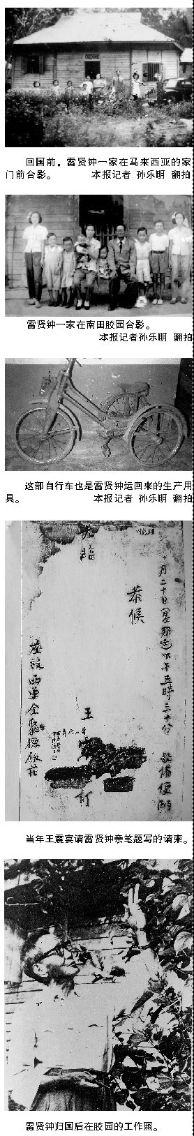 這張照片背后,我們不僅能感受到一位愛國華僑的眷眷之心,還可引申出更大的時代背景:以雷賢鐘為代表的大批愛國華僑,在新中國成立初期,為祖國橡膠事業做出過杰出貢獻。