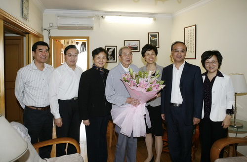 上海市委統戰部副部長丁志堅、市慈善基金會副理事長兼秘書長金閔珠、市僑聯副主席張癸和市僑辦副主任陳文佳看望了菲律賓歸僑、中科院上海植物生理生態研究所研究員施教耐院士和美國歸僑、中科院上海有機化學研究所研究員蔣錫夔院士,感謝他們在各自的科研領域為社會做出的杰出貢獻,是僑界的驕傲。