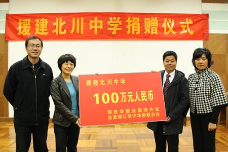 截止目前,浙江省僑胞已為援建北川中學(xué)捐資近千萬(wàn)。
