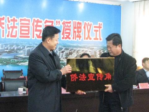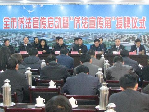 會議對全市僑法宣傳工作進行了部署,并向市中區榮華里社區和光明園社區進行了“全國僑務系統五五普法僑法宣傳角”授牌。