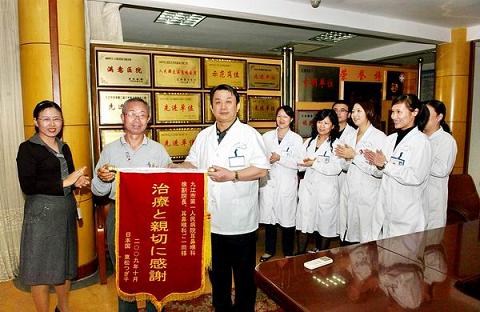 原來,上月的一天,隨團訪問九江的東松老太太,在晚宴上不慎讓一根魚刺卡住了喉嚨,九江市外事僑務辦公室翻譯于紅立即將老人送往市第一人民醫院。該院醫生連夜為老人施醫術,解急難。經過努力,東松老太太化險為夷,安全、按時返回日本,對九江大加贊賞,用中國方式以錦旗相贈為謝。