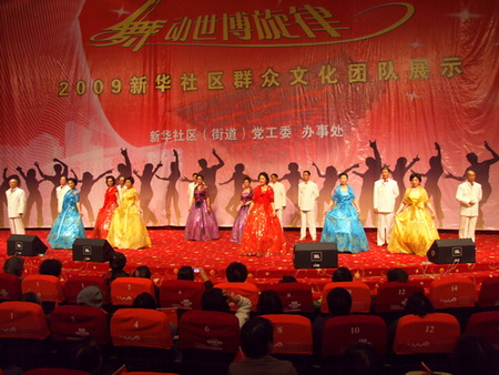 中新網12月2日電 據上海市僑辦消息,11月25日,為宣傳世博、了解世博、走進世博,進一步營造社區迎世博的熱烈氛圍,進一步構建健康、和諧的城區環境和城區活力,上海市長寧區新華社區在上海影城隆重舉辦了“舞動世博旋律”——2009新華社區群眾團隊展示活動。