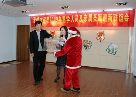 中新網12月25日電 據無錫市僑聯消息,12月20日下午,江蘇省無錫市僑聯、無錫市僑聯留學人員親屬聯誼會、無錫歸國留學人員創業商會在市華僑活動中心舉辦了2009年無錫留學人員及親屬圣誕迎新聯誼會。無錫市委常委、統戰部長周敏煒出席會議并講話。百余名在錫創業服務的歸國留學人員、部分留學人員家屬及市有關部門負責人參加了聯誼活動。