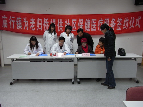 中新網12月25日電 據上海市僑辦消息,日前,上海市寶山區廟行鎮社區衛生服務中心與早期歸僑周紫雯共同簽訂了《提供社區保健醫療服務協議書》。