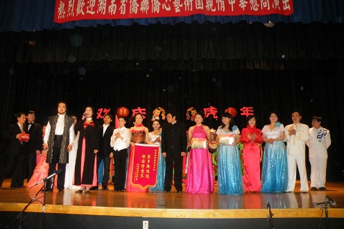 在近3個小時的演出中,湖南省僑聯僑心藝術團先后表演了23個節目,包括合唱、獨唱、服飾表演、小品、舞蹈等。其中《洞庭魚米鄉》曾獲中國音樂金鐘獎首屆合唱比賽金獎第一名、獲2008年第5屆世界合唱比賽銀獎。
