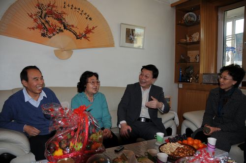 4日,國務院僑辦副主任馬儒沛一行來到內蒙古首府呼和浩特市,慰問該市歸僑僑眷,并為其送上關懷與新春的問候。圖為馬儒沛探訪蒙古歸僑、66歲的內蒙古醫學院返聘教授張劍。