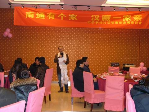 市僑聯(lián)主席鎮(zhèn)翔在座談會(huì)上講話。他向藏族孩子的父母簡(jiǎn)要介紹了活動(dòng)情況,強(qiáng)調(diào)這次活動(dòng)是僑界的一項(xiàng)愛(ài)心活動(dòng),也是發(fā)揚(yáng)“南通精神”、促進(jìn)民族團(tuán)結(jié)的重要工作。他希望結(jié)對(duì)孩子的家長(zhǎng)能對(duì)活動(dòng)多提寶貴意見(jiàn),促進(jìn)活動(dòng)的進(jìn)一步完善。