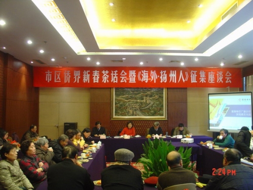 中新網2月21日電 據揚州市僑聯消息,日前,江蘇省揚州市僑聯召開了市區僑界新春茶話會暨“海外揚州人”征集座談會,揚州市僑聯副主席徐選、市檔案局副局長柏桂林等和市區歸僑僑眷代表150余人參加了會議。