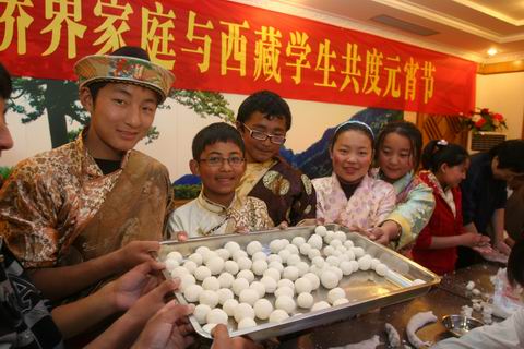中新網(wǎng)3月3日電 據(jù)南通市僑聯(lián)消息,2月28日,與江蘇省南通市僑界家庭結(jié)對的50名藏族孩子全部“回家”與“親人”共度元宵佳節(jié)。
