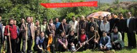 福建省僑聯副主席楊崢嶸、謝小建、福州市人大副主任陳樹雄、市政協副主席陳震宙、福州市僑聯黨組書記、主席藍桂蘭、福州市僑聯副主席、鼓樓區僑聯主席李盛玉、永泰縣僑聯黨支部書記汪秀錦等領導與青年委員和僑聯機關干部共同栽下近百株的桃樹和桂花樹,并細心地為每棵樹苗系上簽有自己名字的綠葉圖形標識,寓意僑聯事業與樹苗一同成長壯大、煥發生機活力。