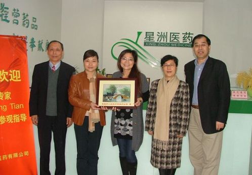 中新網3月31日電 據無錫市僑辦消息,為加強與企業的聯系溝通,更好地為無錫經濟服務,3月29日,江蘇省無錫市僑辦主任何巧鳳、副主任毛小言走訪了無錫星洲醫藥有限公司,與該公司總經理周文婭以及在該公司考察并有意與星洲醫藥公司合作的美國醫藥專家田達成、孫新生進行了座談和交流。