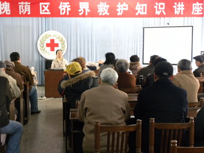 此次講座邀請濟南市紅十字救護培訓中心主任葛青主講。期間,葛青以心肺復蘇、氣道異物梗塞以及各種常見急癥和意外傷害的現場急救為主進行了系統講解,還就大家普遍關心和關注的老年人心臟保健和急救等問題進行了交流互動、現場答疑,并進行了現場示范,使僑胞們在掌握自救常識的同時,進一步增強了關愛救助他人的能力。