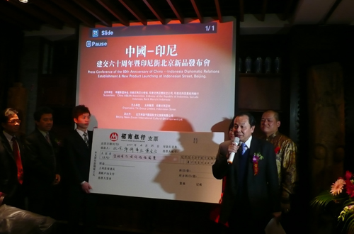 中新網4月28日電 據北京市僑聯消息,在中印建交六十周年之際,北京市部分歸僑、僑眷和來華的印尼人士于4月24日在北京炎黃藝術館子園會所俱樂部舉行了紀念活動,同時還舉辦了由印尼陽成集團有限公司建立印尼街北京品在京發布,這是繼上海印尼街后又一個舉措。
