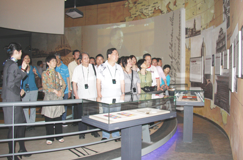 當天下午,胡運熹一行一踏上老家駱駝這塊土地就感到非常興奮,在鎮海新城管委會,聽取了新城規劃介紹,觀看了沙盤,更是深有感觸。隨后,胡運熹一行來到寧波幫博物館,走過“時光甬道”,先后參觀了寧波幫博物館序廳、篳路藍縷、建功立業、赤字情懷、群星璀璨和薪火永傳等展區。“小白菜,嫩艾艾,丈夫出門到上海……”當解說員用寧波話朗讀出一句句寧波民謠時,構起了他們童年時的記憶,海外僑領們熱烈鼓掌,并對寧波商幫文化的精髓與傳承表示稱贊。胡運熹一行來到鎮海應行久外語實驗學校, 在參觀了體藝館、多媒體教室、語音實驗室等處后,胡運熹連連感慨校園的巨大變化。同時他對該校“為了一切學生的健康成長,促進每個學生的最優發展”的教學理念表示由衷的贊賞。他說,鎮海在培養人才方面,有這樣好的學校、這樣的優秀的老師,我們的下一代將會有更好的遠景,我們的祖國也會給世界一個全新的面貌。