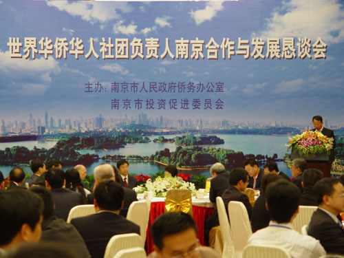 在南京,江蘇省政府辦公廳副秘書長張吉生、南京市政府辦公廳副主任宋璐等見宴了考察團一行。華僑華人社團負責人出席了由南京市僑辦和南京市投資促進委員會共同主辦、南京市有關各區經貿部門參加的“世界華僑華人社團負責人南京合作與發展懇談會”,參觀了南京市雨花軟件園和南京市規劃建設館。