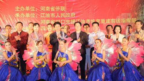 此次演出是在河南省對(duì)口援建江油的任務(wù)基本完成和由中國(guó)僑聯(lián)援建的北川中學(xué)即將竣工之際,河南省僑聯(lián)為了表達(dá)對(duì)援建、捐建四川地震災(zāi)區(qū)建設(shè)者的崇高敬意,組織近50名演員專(zhuān)場(chǎng)慰問(wèn)演出。四川省僑聯(lián)從組織接待、提供用車(chē)、制定方案、聯(lián)絡(luò)協(xié)調(diào)、勘測(cè)場(chǎng)地、組織參觀、安全保障等給予了全方位的配合和支持。綿陽(yáng)市僑聯(lián)、江油外僑辦積極參與,組織有序,使2000多名援建工作者和當(dāng)?shù)厝罕姟W(xué)生觀看了演出,達(dá)到了慰問(wèn)目的。(趙建中)