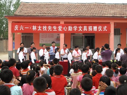 濟陽縣回河林柯僑心小學是林太找、林太松兩兄弟向濟南慈善總會海外捐贈分會捐資人民幣30萬元,在鎮中心小學基礎上擴建的。林太找在了解到該校去年各項教學指標名列全縣前列時感到很欣慰,表示將進一步加大對學校的扶持力度,以改善教學環境,提高教學質量。