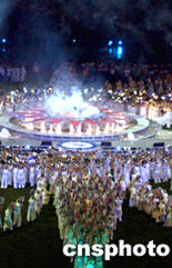 第十四屆釜山亞運會閉幕式十四日晚在釜山社稷主體育場舉行。圖為閉幕式上的主題晚會“歸鄉(xiāng)”一景。中新社圖 武仲林 攝