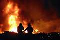 圖文:消防人員撲滅墜毀飛機上的火焰